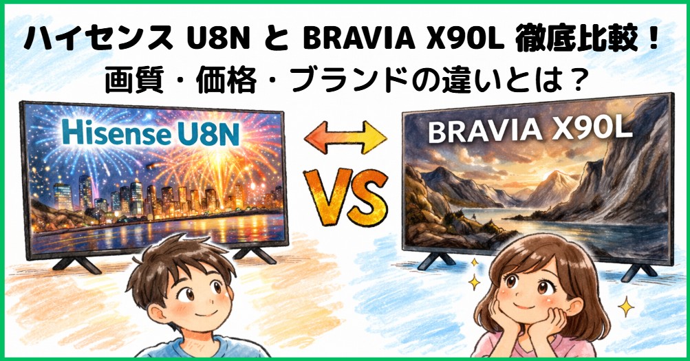 この記事では、Hisense 55U8NとSONY BRAVIA X90Lを冷静に比較していきます。スペックの違いだけでなく、実際の視聴シーンや使い方を想定しながら、それぞれの特長と選び方のポイントを整理していきます。