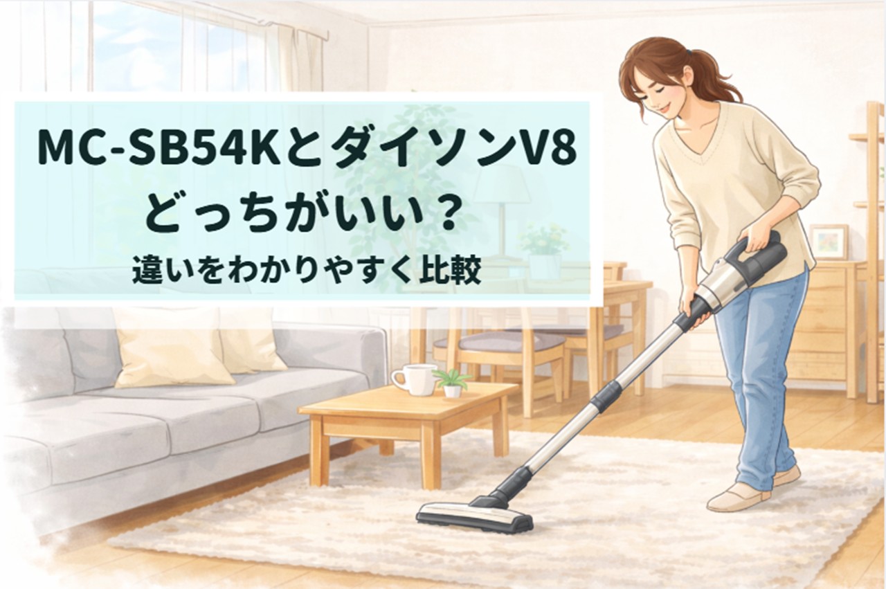 この記事では、パナソニックのMC-SB54KとダイソンV8 Slim Fluffyを比較しながら、それぞれの違いや特徴を整理し、どちらが自分に合っているのかが無理なく判断できるようにまとめています。