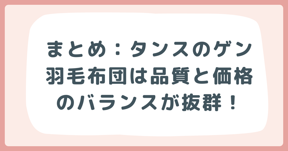 まとめ:タンスのゲン羽毛布団は品質と価格のバランスが抜群!